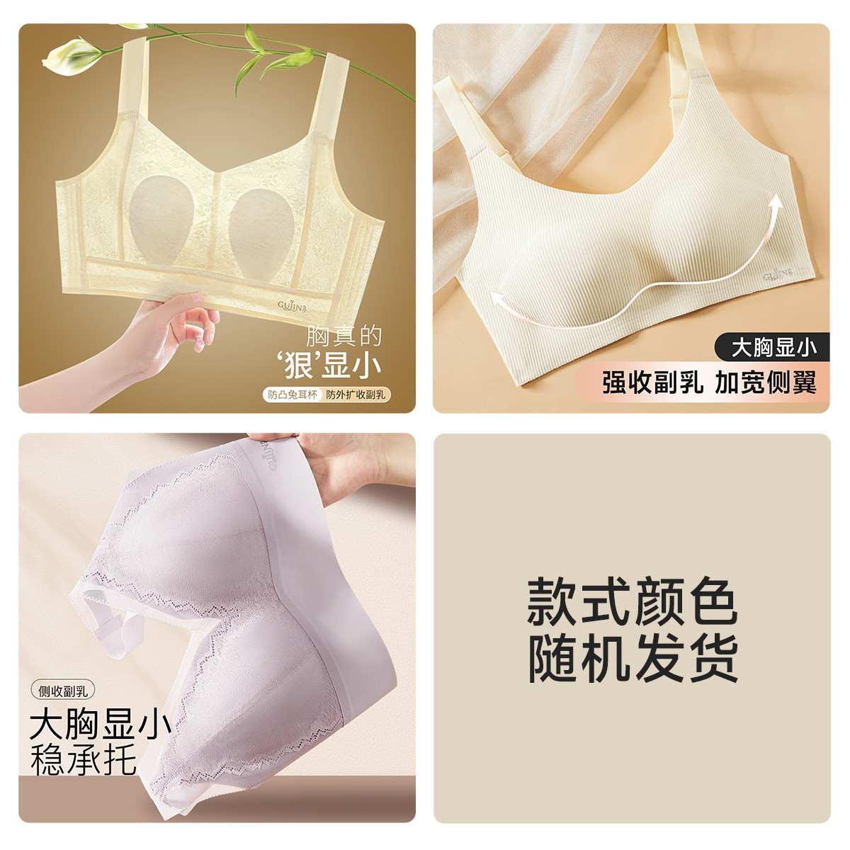 捡漏【大胸显小兔耳杯】大包容提拉防下垂美背无钢圈内衣文胸罩女 722251
