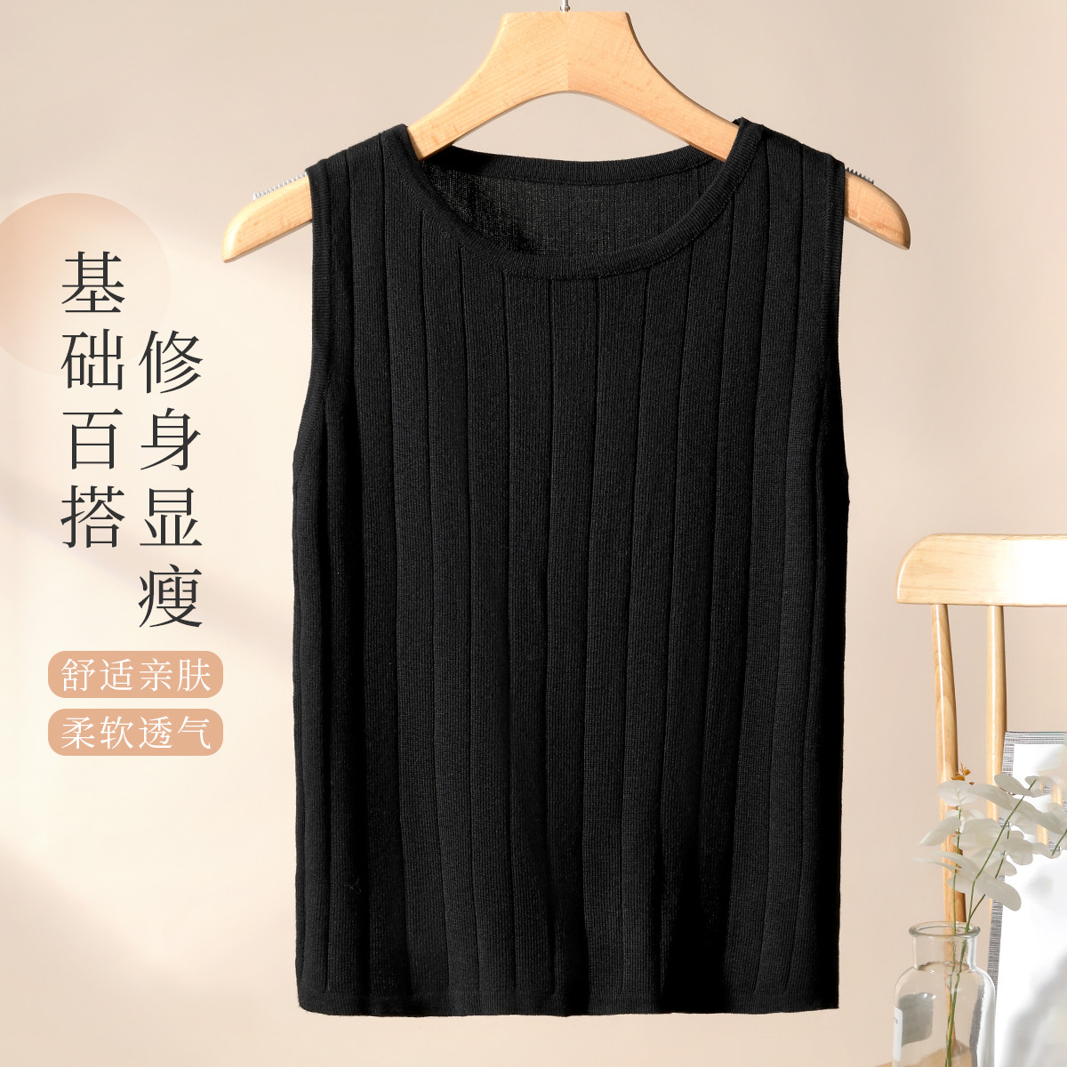 【修身显瘦】宽肩带百搭打底针织衫上衣吊带背心内搭可外穿吊带女 190795