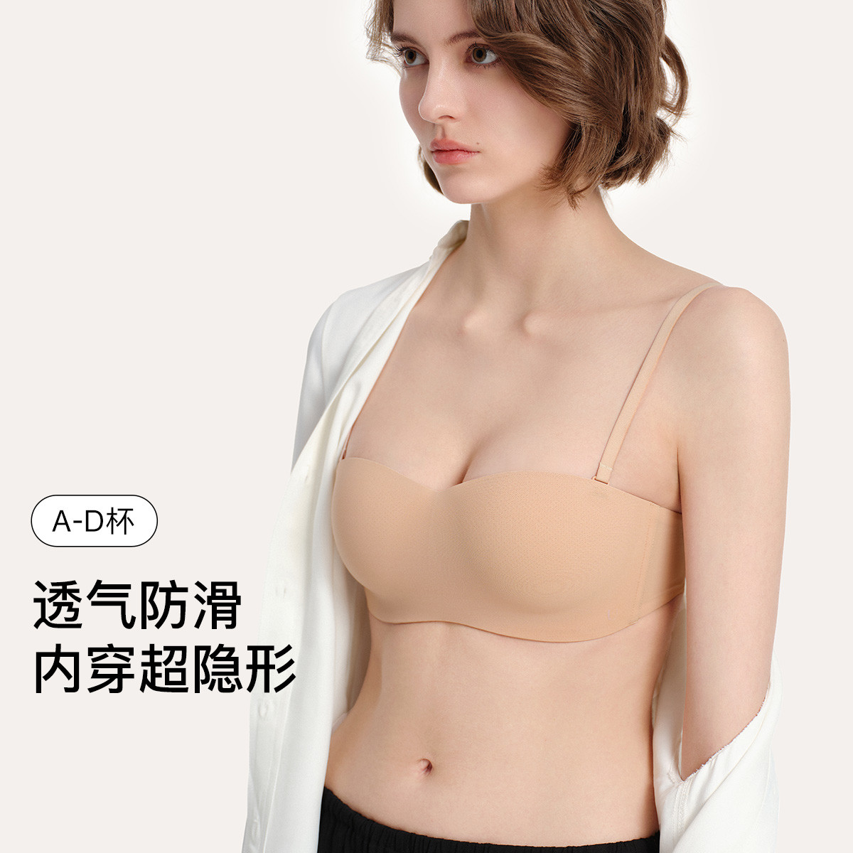 【可拆卸肩带抹胸】透气轻纱聚拢防滑透气隐形内衣女士文胸无钢圈 156160