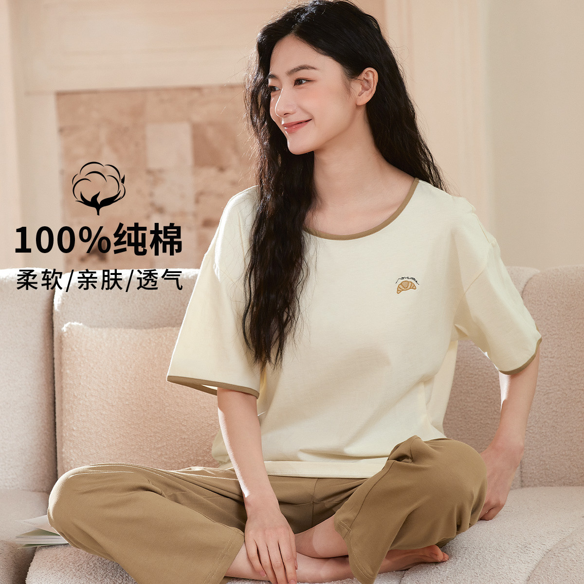 【100%棉】柔软舒适纯棉短袖套装女士家居服休闲居家亲肤透气 688843