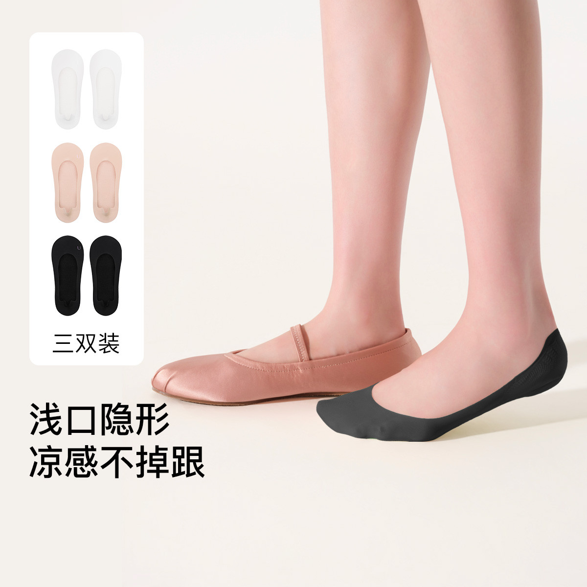 【无痕百搭】3双装浅口气垫船袜减震不掉跟舒适女袜夏季 047680