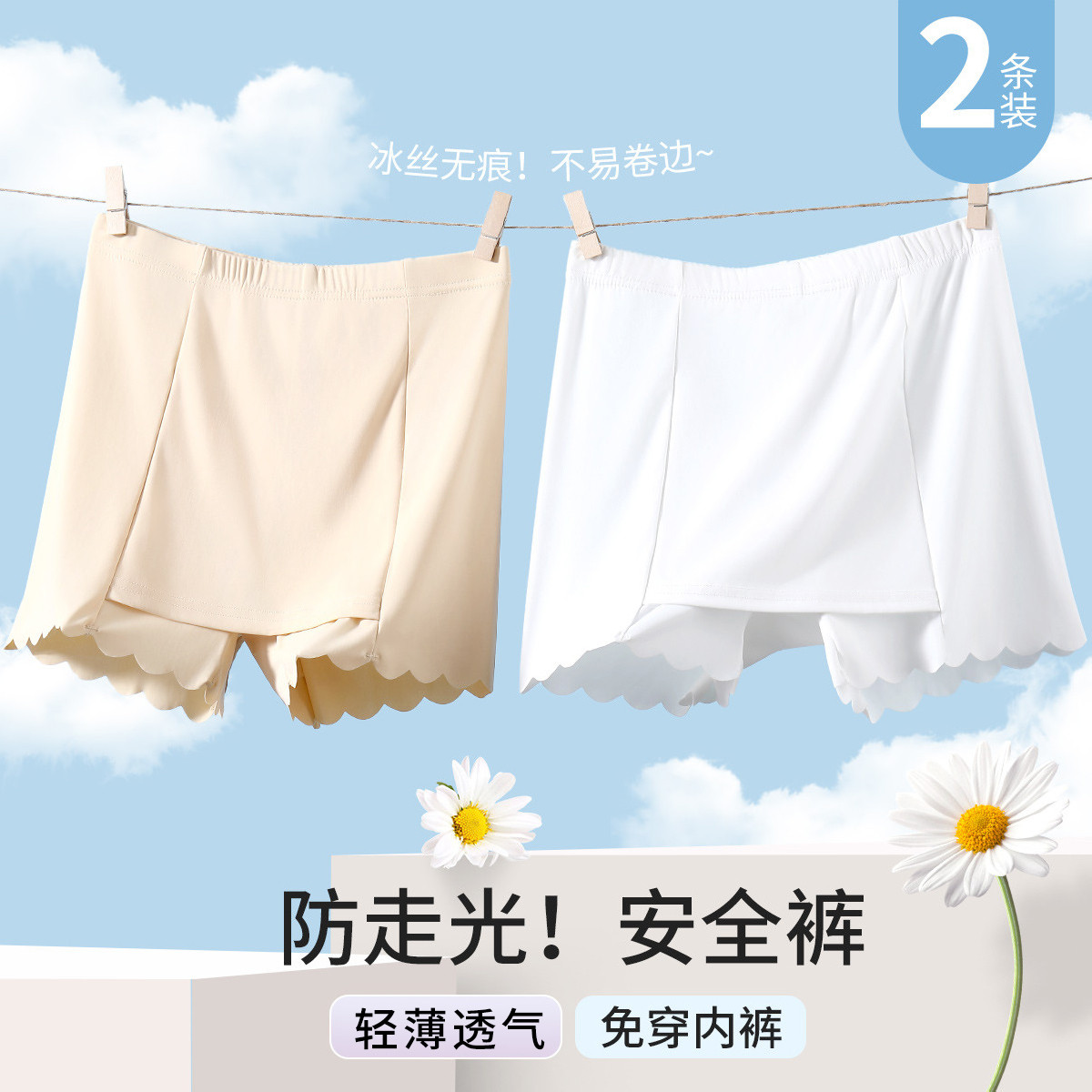 【王牌爆款】100%纯棉抑菌裆打底安全裤防走无痕薄2条装女士 344832