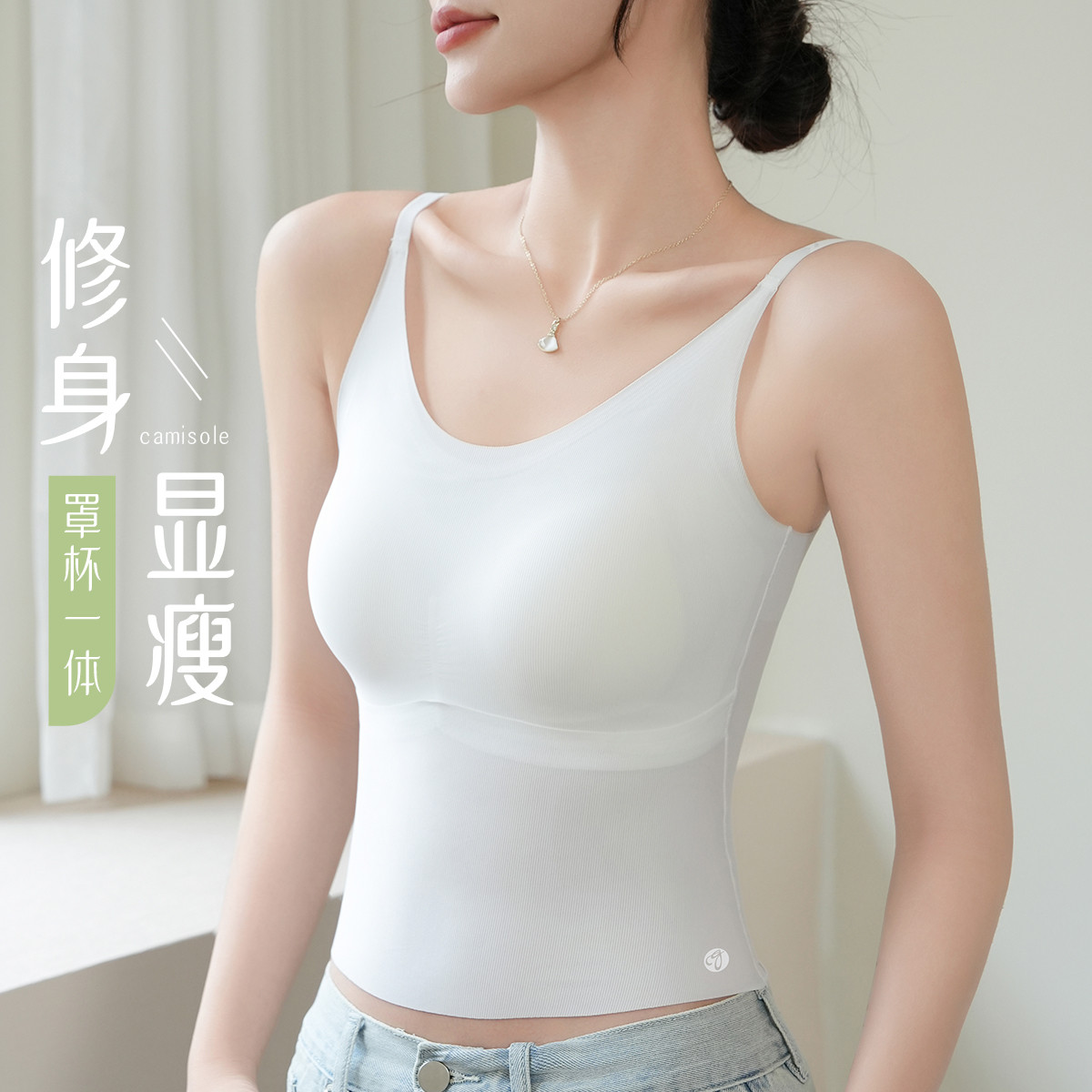 【含桑蚕丝吊带】冰丝吊带背心可外穿美背显瘦吊带背心内衣女 637579