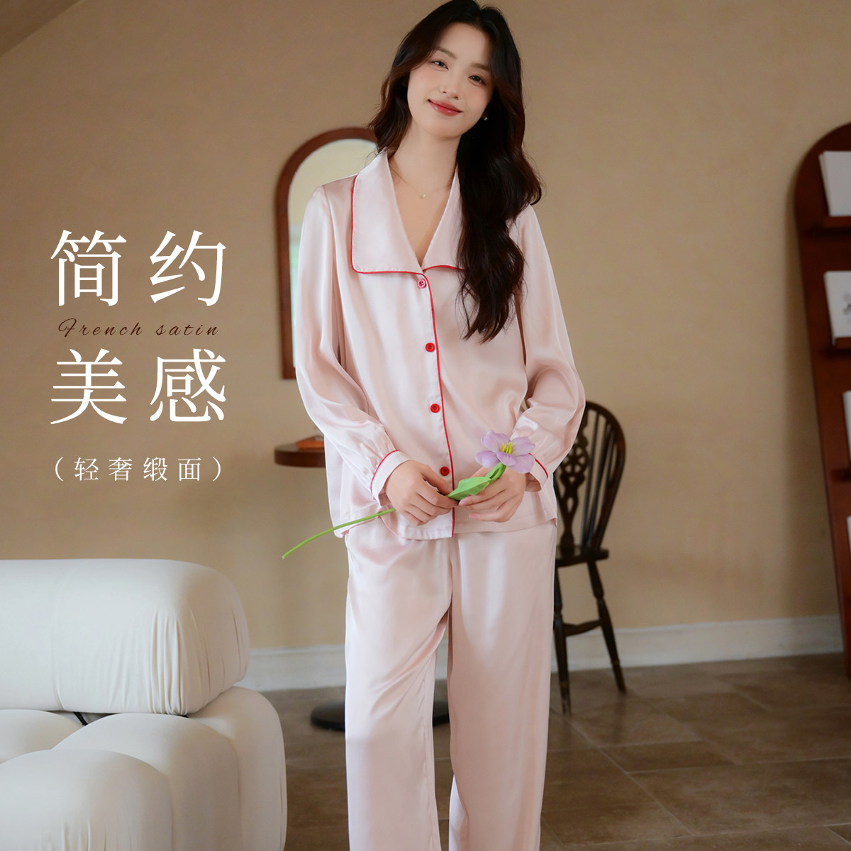 【法式优雅】高级感丝滑缎面女士冰丝睡衣春夏款可外穿家居服套装 304267