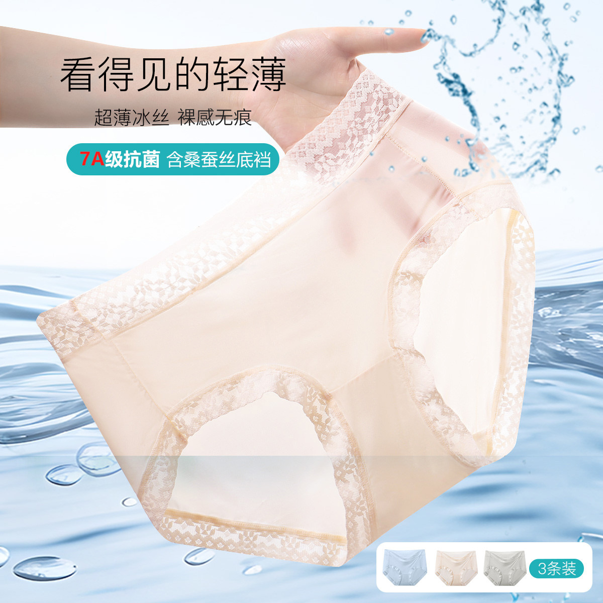 【7A级抑菌】3条装夏季透气轻薄无痕冰丝含桑蚕丝底裆内裤女 480606
