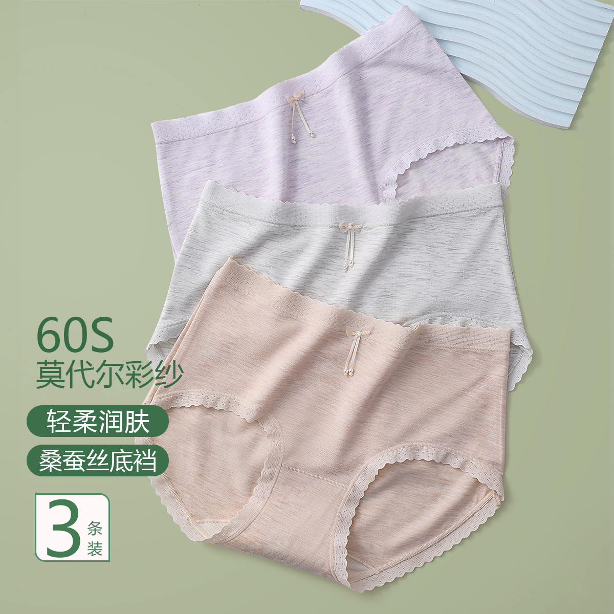 【60S莫代尔】彩纱含桑蚕丝裆透气亲肤女士内裤三角裤夏季薄款 295070