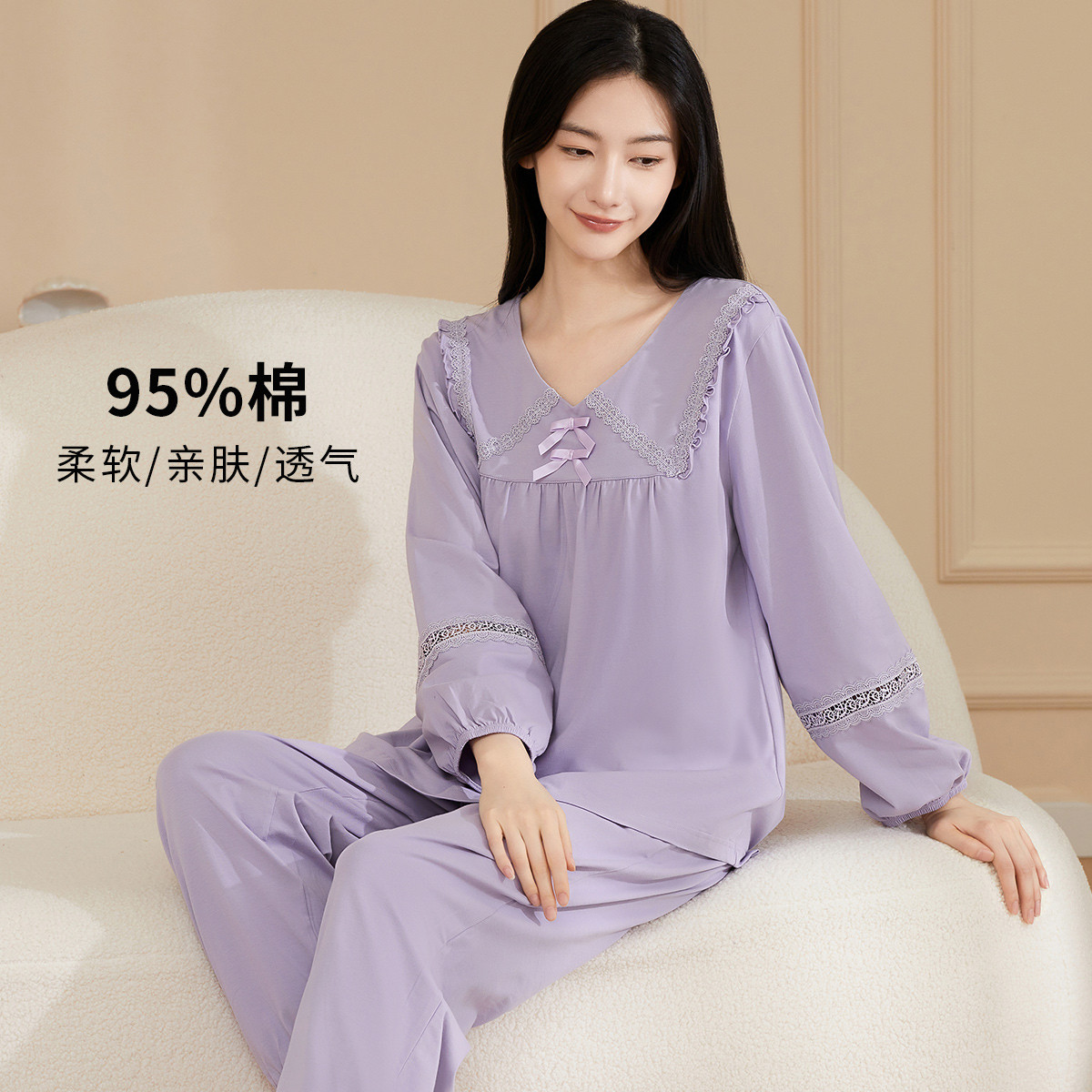 【100%棉】可外穿家居服套装女士春秋款高级感长袖长裤睡衣 607883