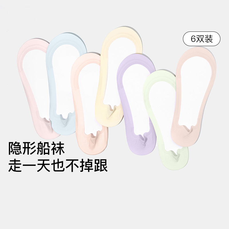 【防滑不掉跟】6双装浅口超浅口船袜隐形无痕轻薄透气吸汗女袜 981504