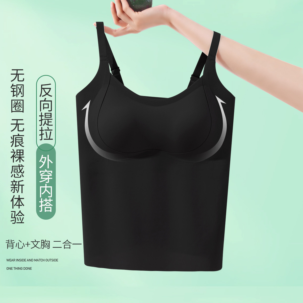 钜惠捡漏【带胸垫】反向提拉裸感无痕聚拢二合一内衣吊带打底背心 562846