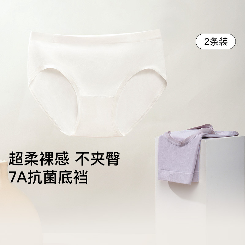 【7A抗菌不夹臀】莫代尔纯棉底档中腰三角裤不卷边内裤女2条装 761920