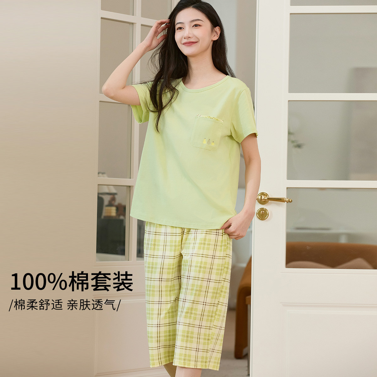 【100%棉】纯棉柔软短袖套装女士睡衣家居服休闲舒适透气 947339