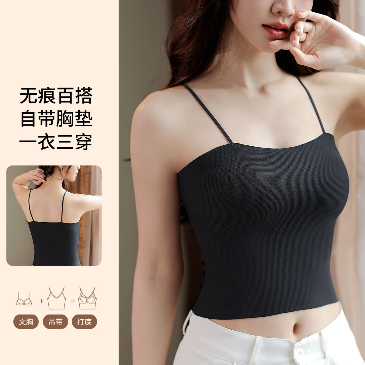 【钜惠捡漏 自带胸垫】乳胶垫防螨透气百搭内衣女士吊带打底背心 887390