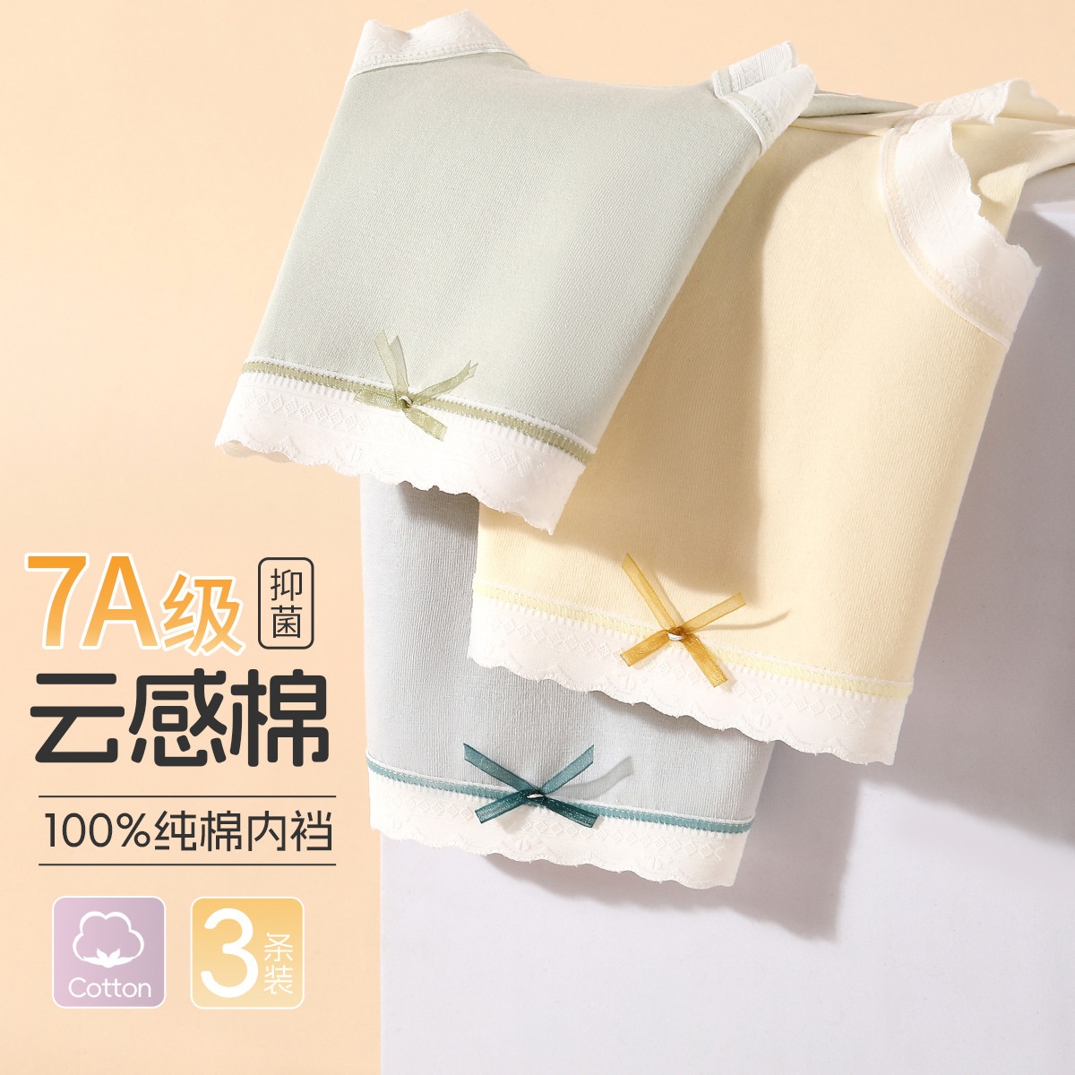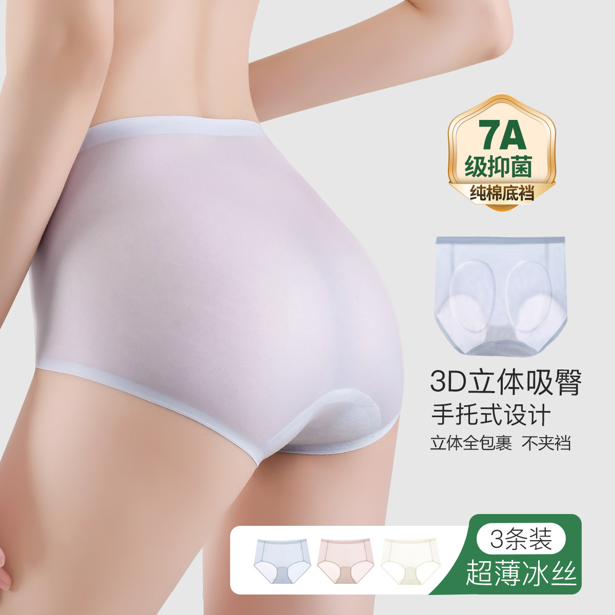 【7A抑菌100%纯棉裆】3条超薄亲肤冰丝无痕包臀女士内裤女 548766