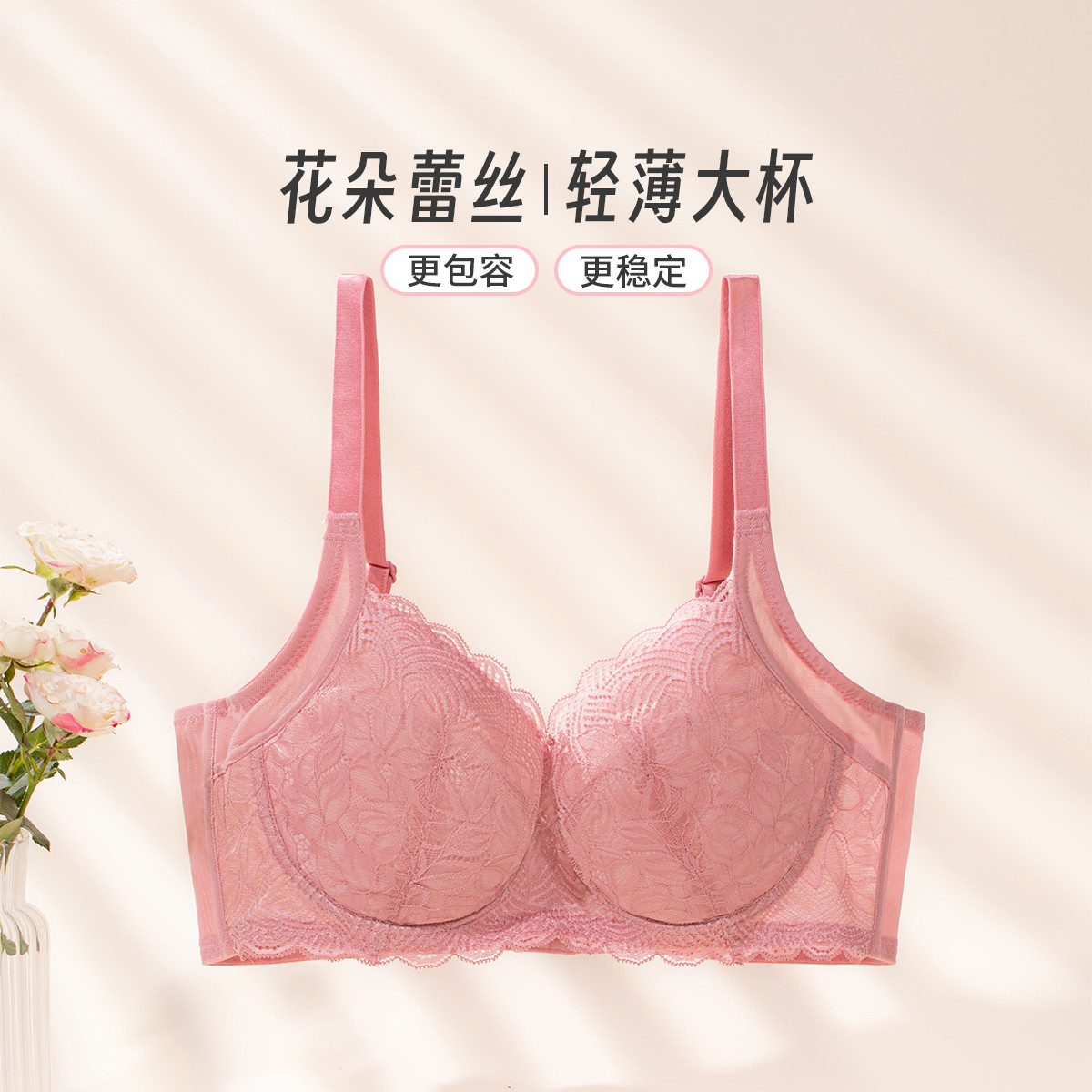 【精致透气 花瓣杯】清爽性感花卉蕾丝舒适承托薄杯内衣文胸女士 576715