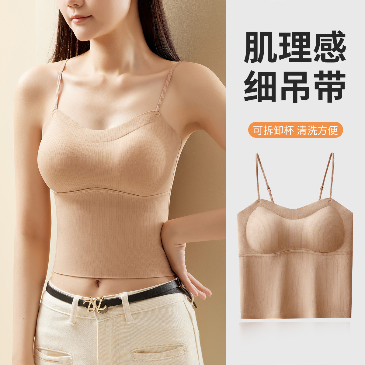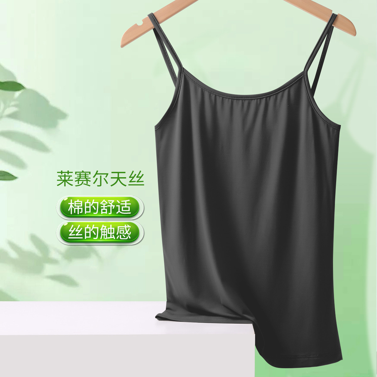 【杯罩一体】莱赛尔带胸垫时尚短款性感美背女士吊带打底背心 005790