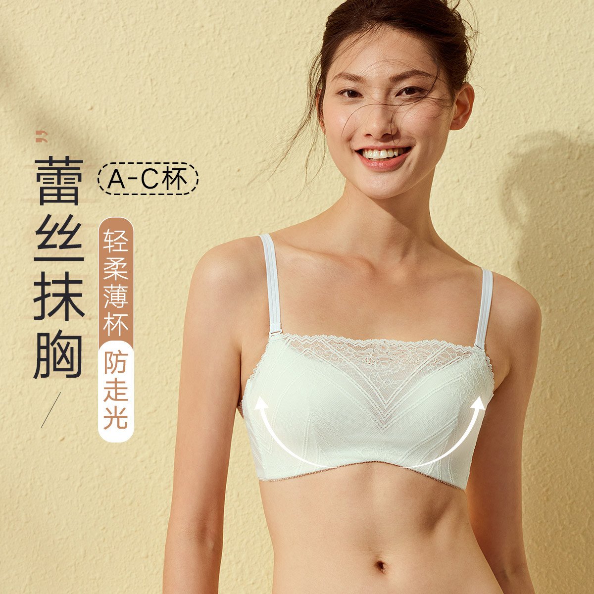 【几何花卉蕾丝】防走光抹胸文胸舒适无钢圈内衣性感蕾丝美背胸罩 270683