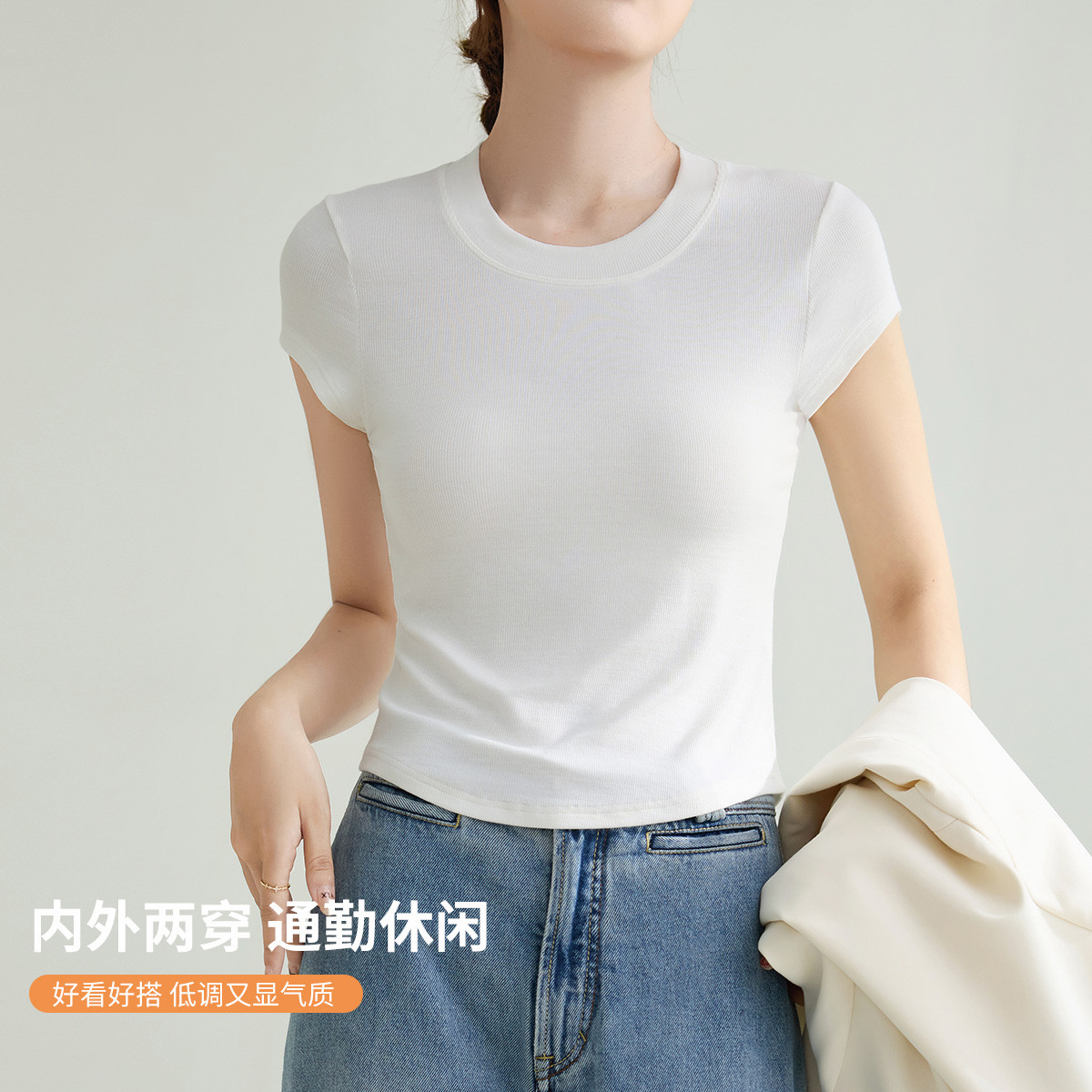 【修身显瘦】女士短袖t恤可内搭可外穿纯色套头打底百搭针织上衣 037579