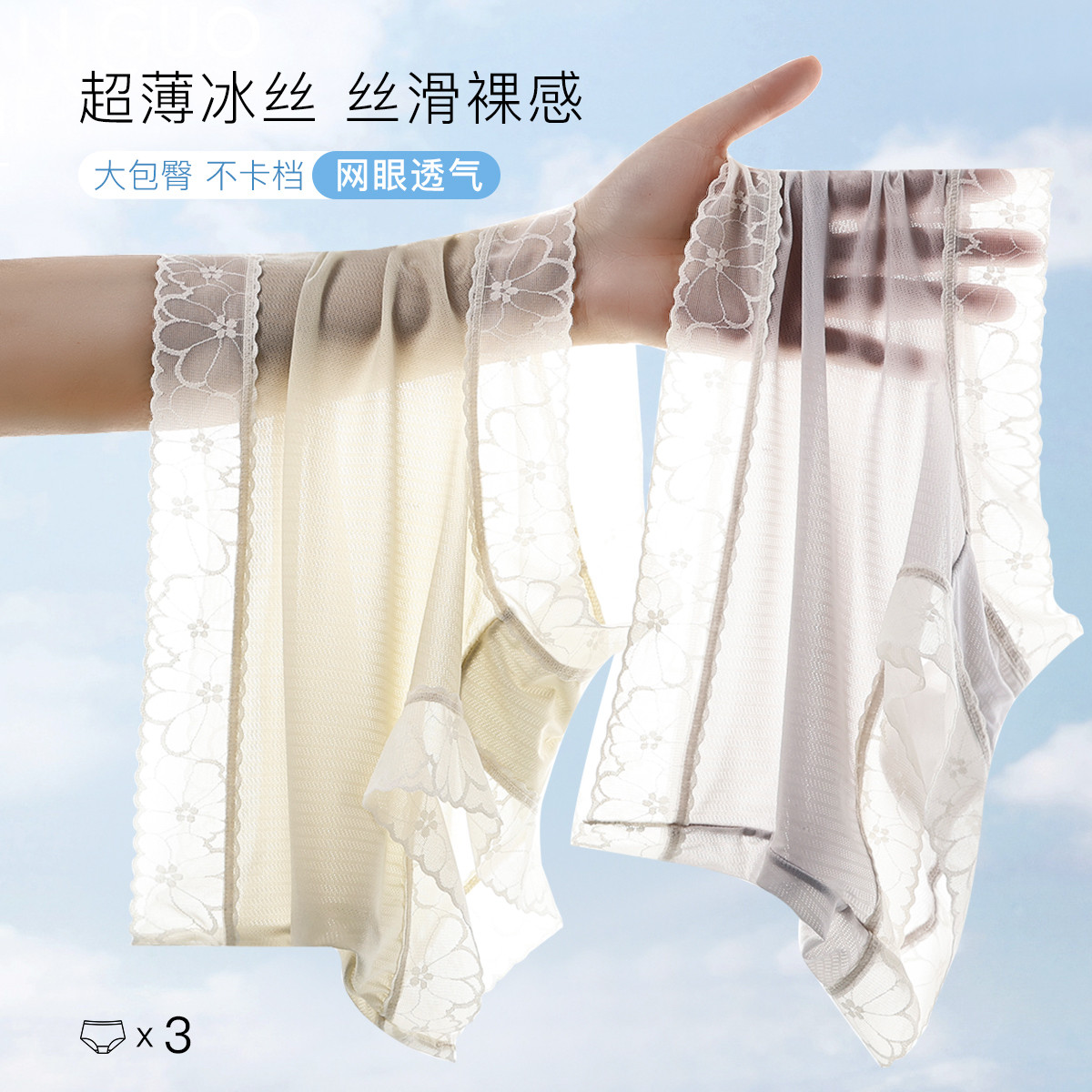 【含桑蚕丝底裆】3条超薄舒适冰丝网孔透气无痕高腰女士内裤女 160094