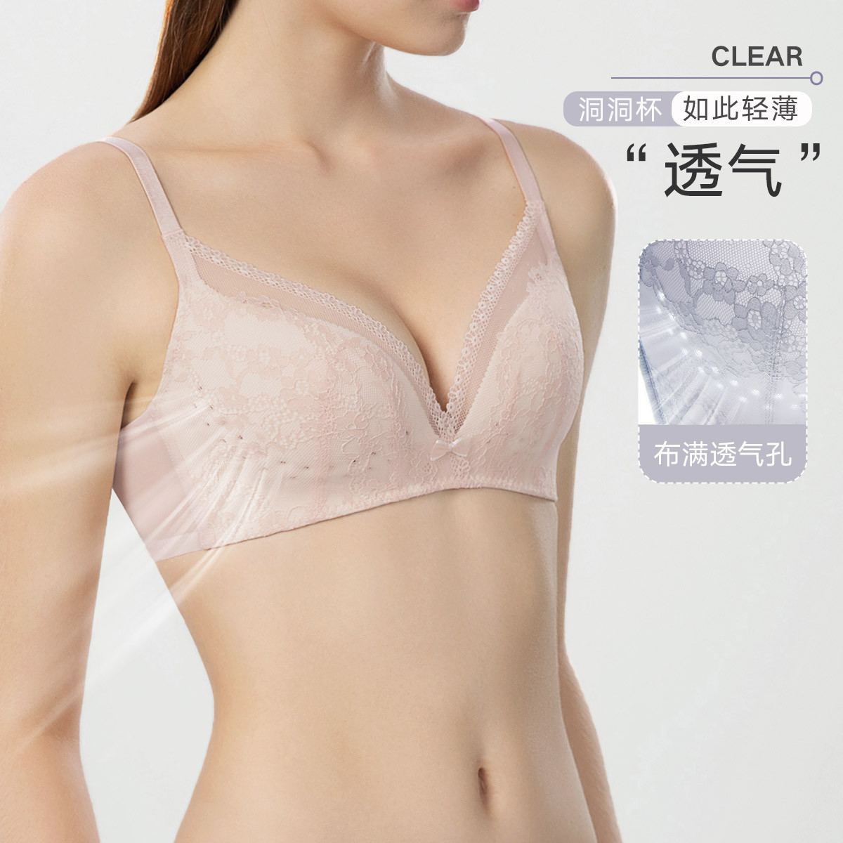 【透气洞洞杯】轻薄5MM性感蕾丝无钢圈聚拢侧收文胸内衣女 532827
