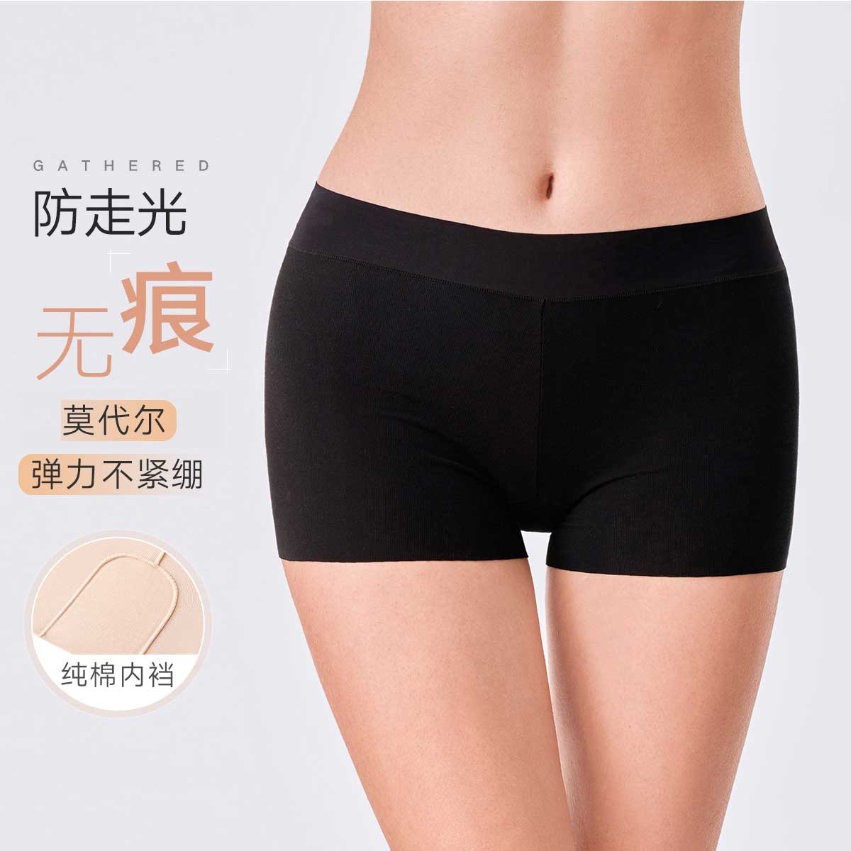 【无痕抑菌防走光内裤】安全裤中腰收腰提臀平角内裤女短款打底裤 725915