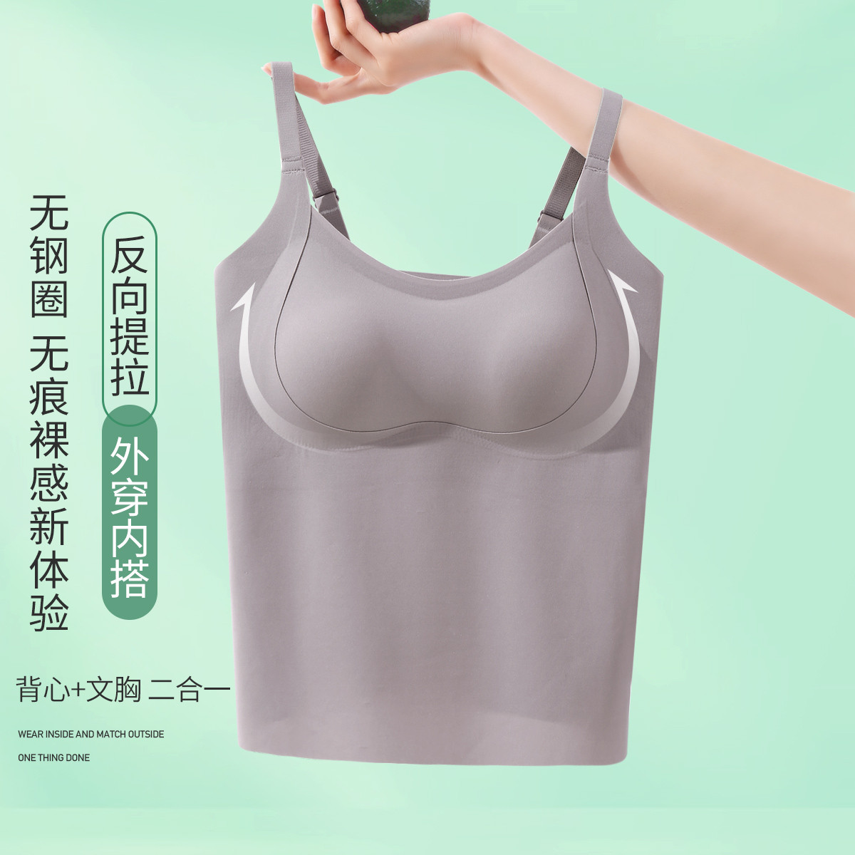 钜惠捡漏【带胸垫】反向提拉裸感无痕聚拢二合一内衣吊带打底背心 616094