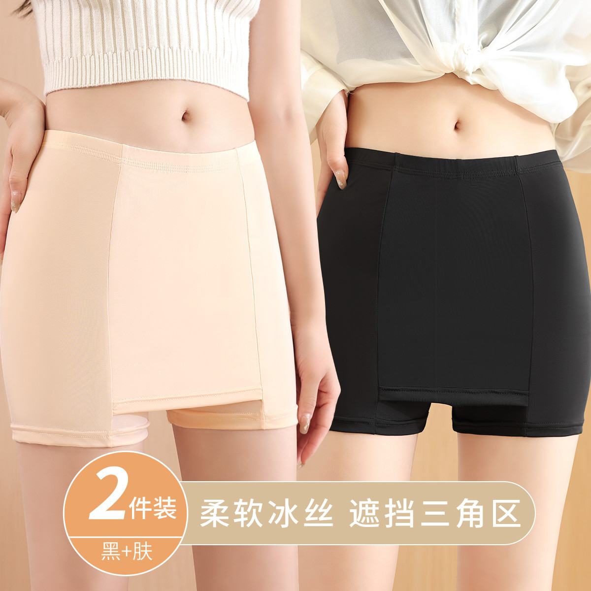【2条装高弹无痕防走光】丝滑冰丝超薄女士夏季四角安全裤不卷边 208523