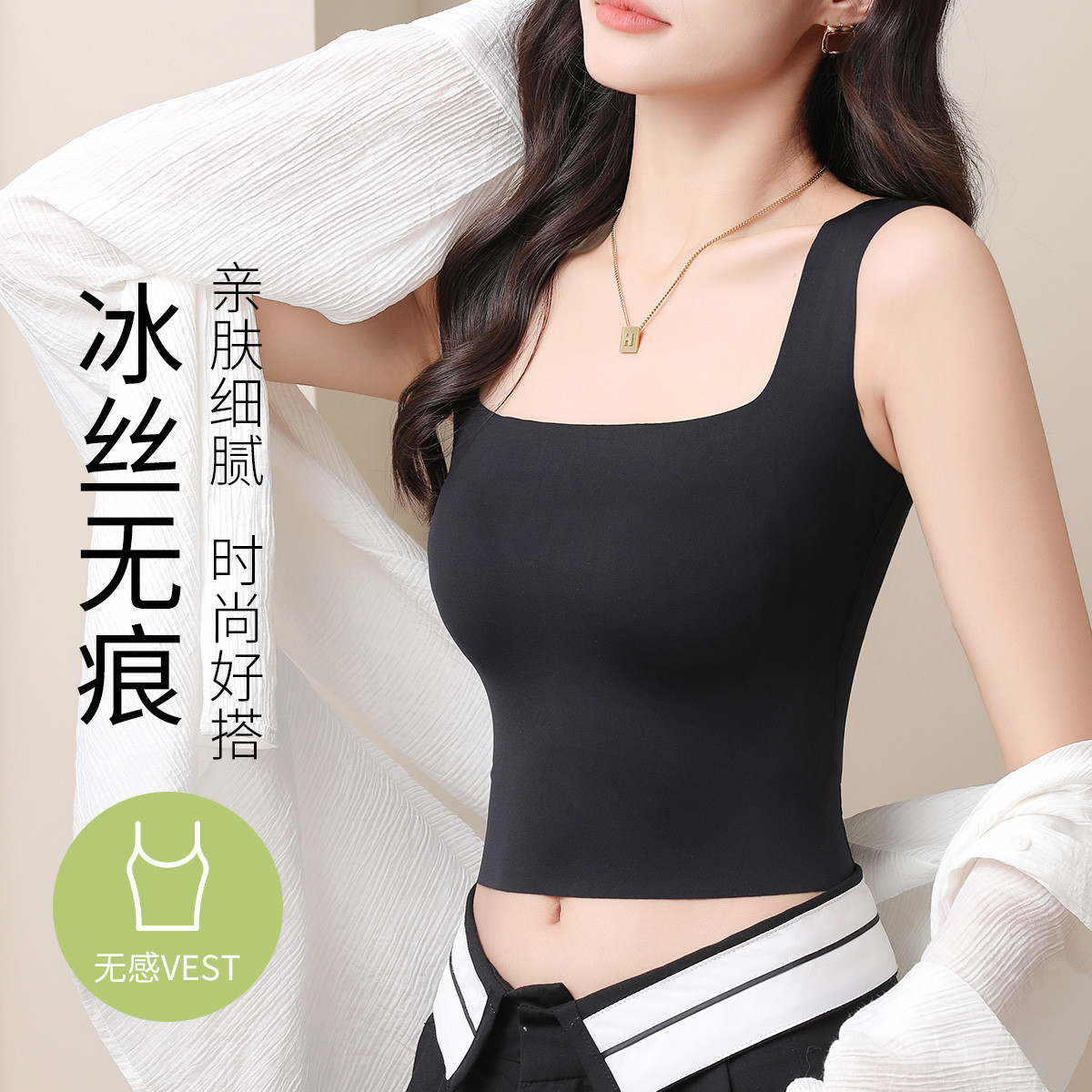 【带胸垫吊带】打底冰丝内衣夏季薄款女舒适无痕美背心内搭可外穿 769547