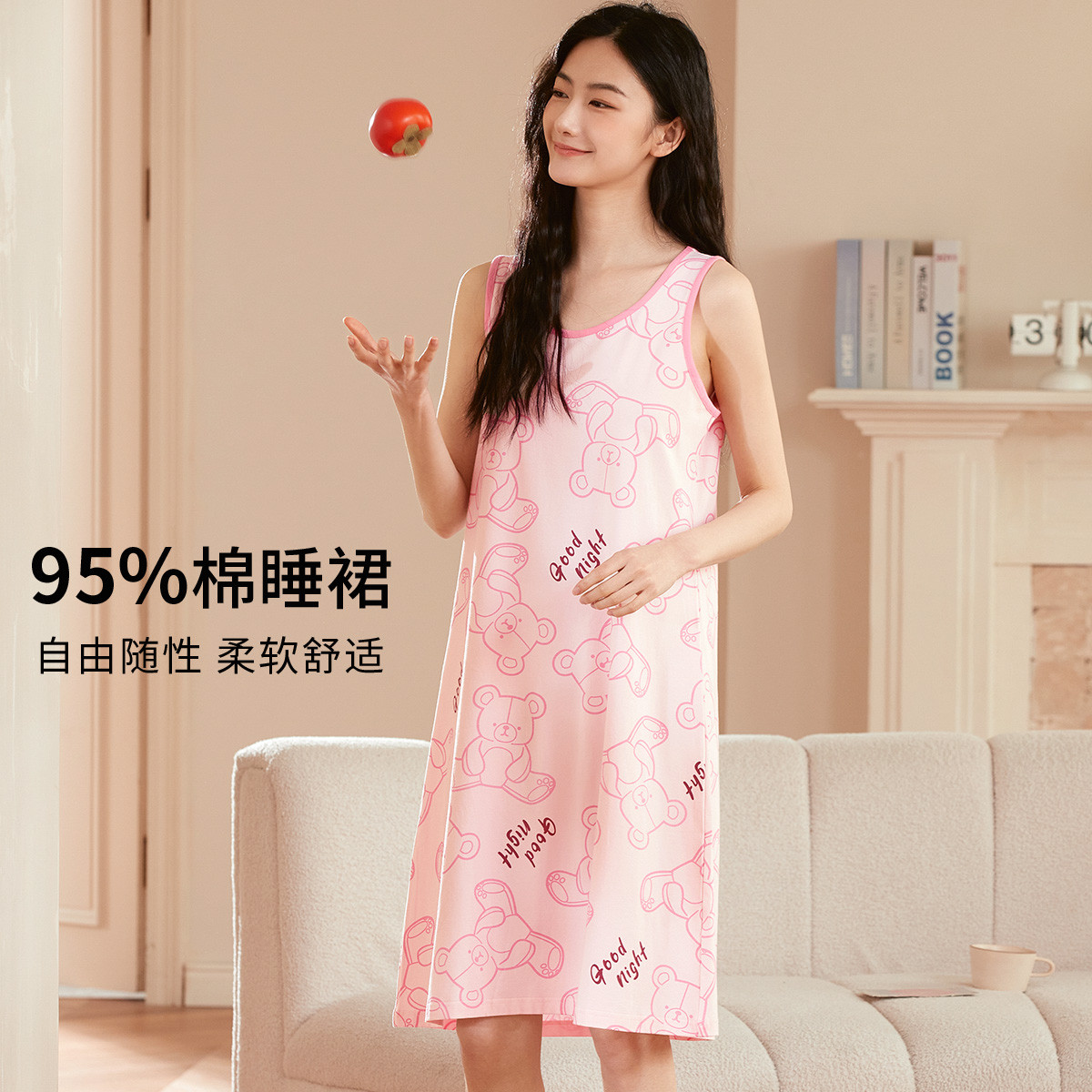 【居家休闲】可爱小熊套头无袖女士睡裙柔软舒适亲肤透气 939147
