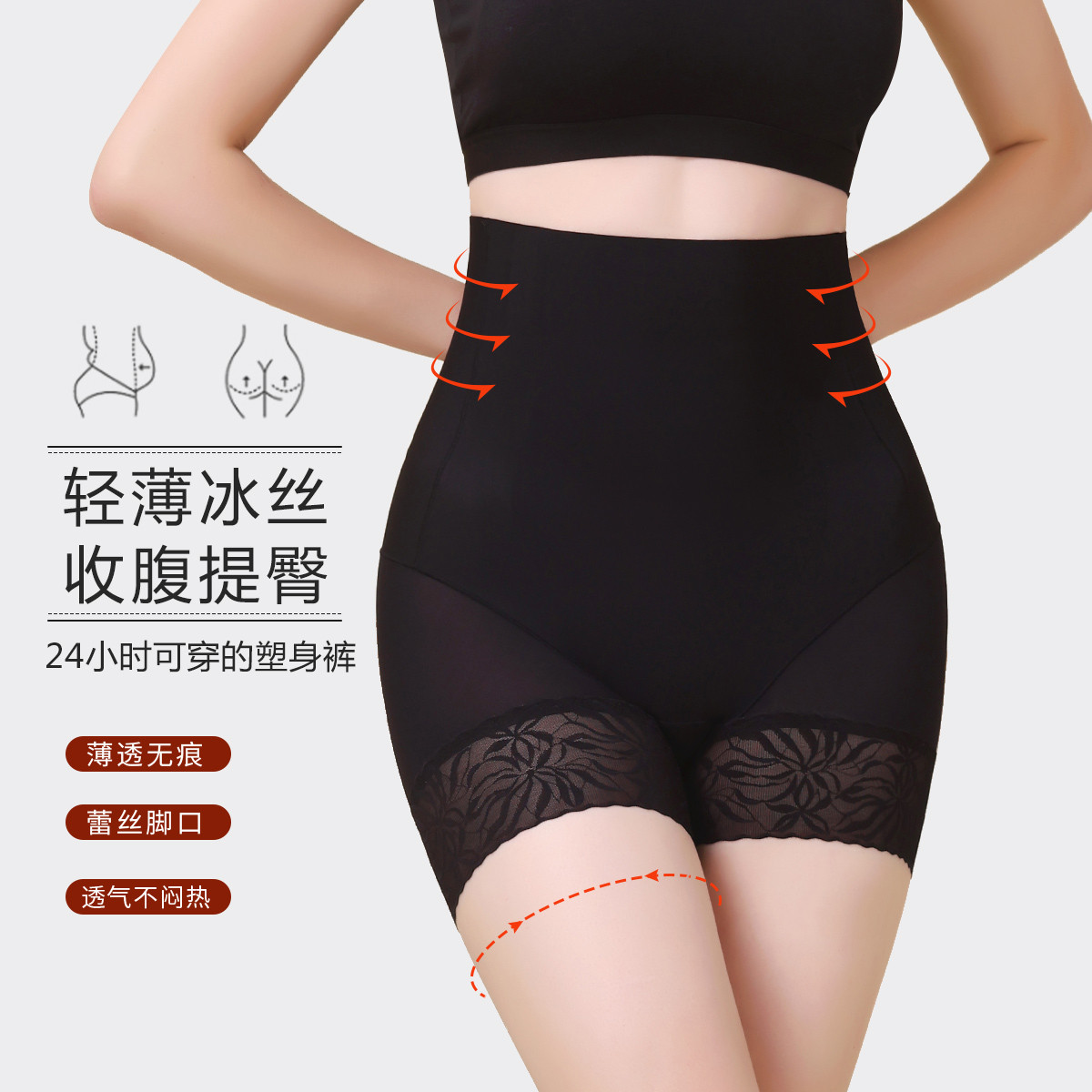 【轻薄透气 收腹提臀】内裤蕾丝轻薄透气微压高腰收腹提臀塑身裤 076190