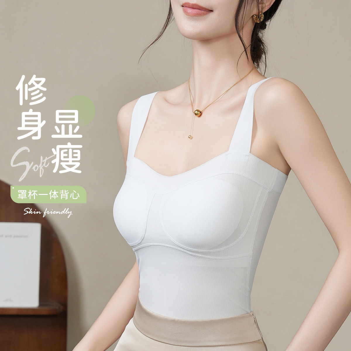 【自带胸垫】舒适无痕内衣夏季薄款女士百搭性感吊带背心免穿文胸 649547