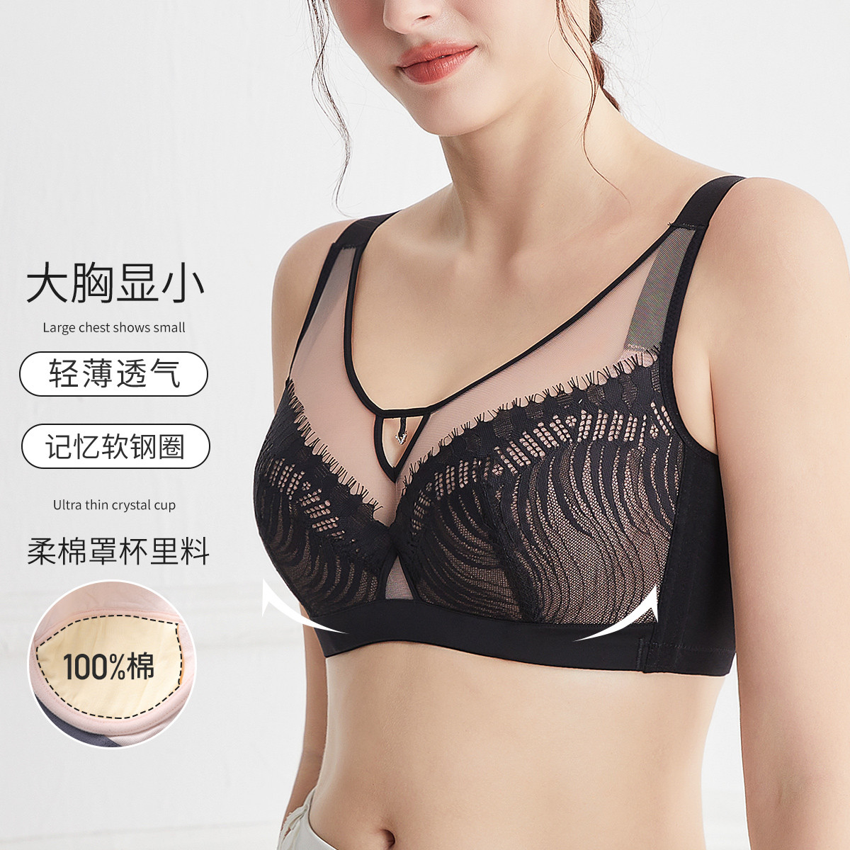 【100%纯棉杯内里】蕾丝性感调整型大胸显小防下垂聚拢文胸罩 543966