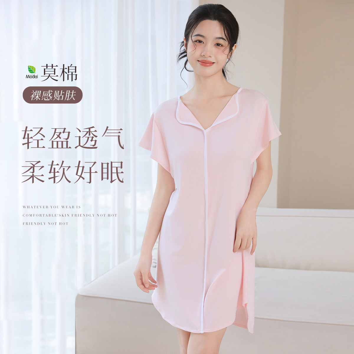 【莫代尔】性感纯色V领睡衣女睡裙夏季薄款中长款连衣裙家居服 466891