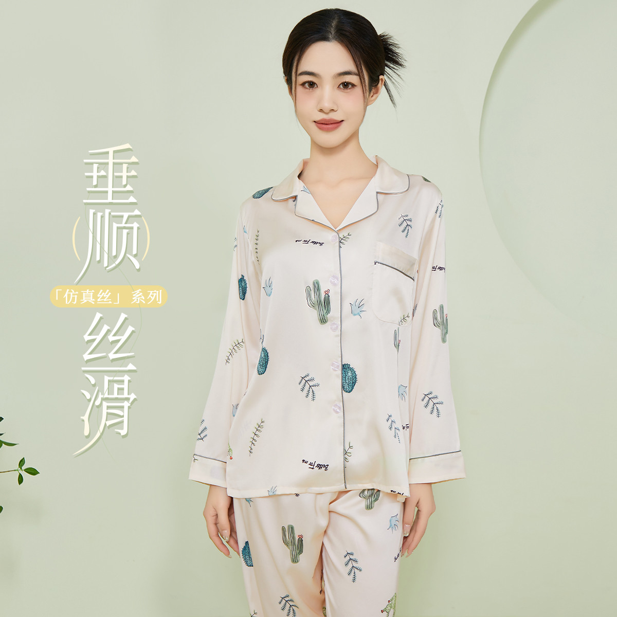 【垂感丝滑】女士印花家居服睡衣冰丝睡衣春秋长袖套装女可外穿 693451