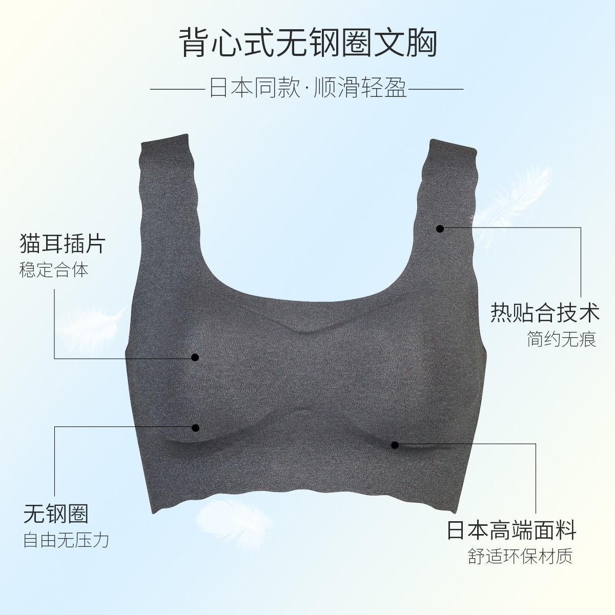 【舒适美学猫耳杯】宽肩带减负无痕无压有型背心女内衣文胸无钢圈 034373