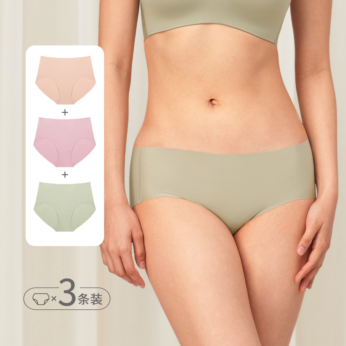【3条装钜惠】光面无痕内裤女舒适透气无缝中腰平角裤 367178