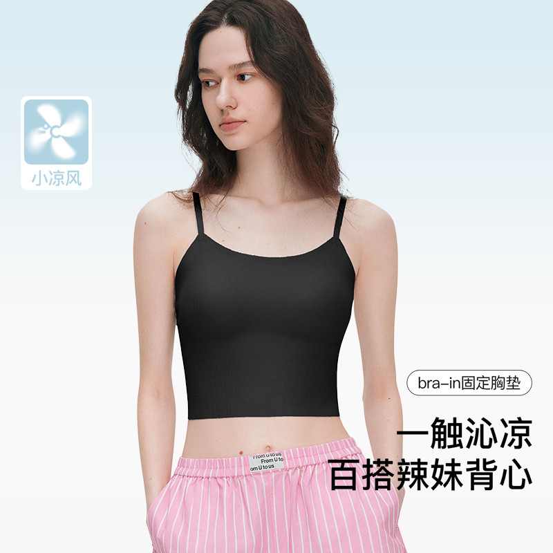 【小凉风带胸垫】镂空美背无痕吊带打底背心bra-in聚拢薄款 579072