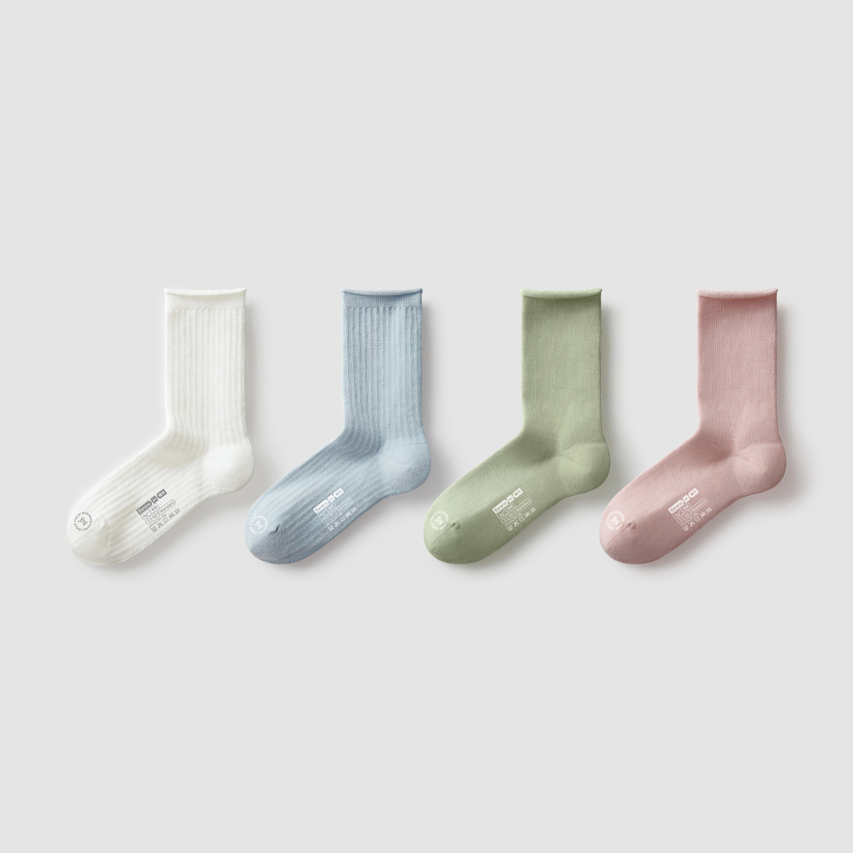 【赵露思同款】7A抗菌300S堆堆袜网眼防臭长袜月子袜4双 980741