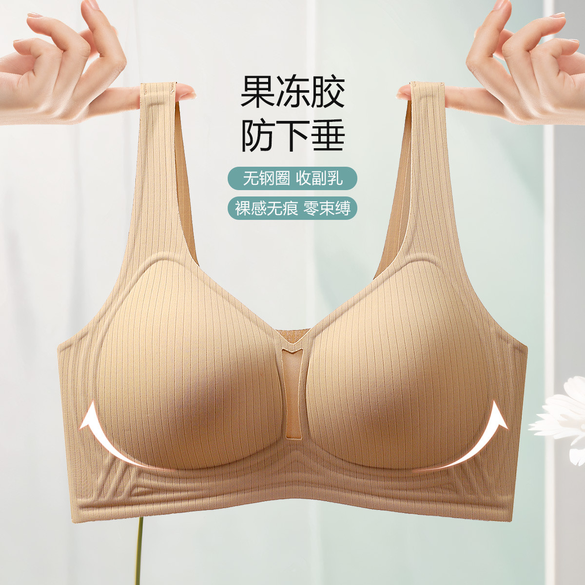 【时尚字母】果冻条无痕美背内衣女大胸显小无钢圈聚拢透气文胸罩 526110