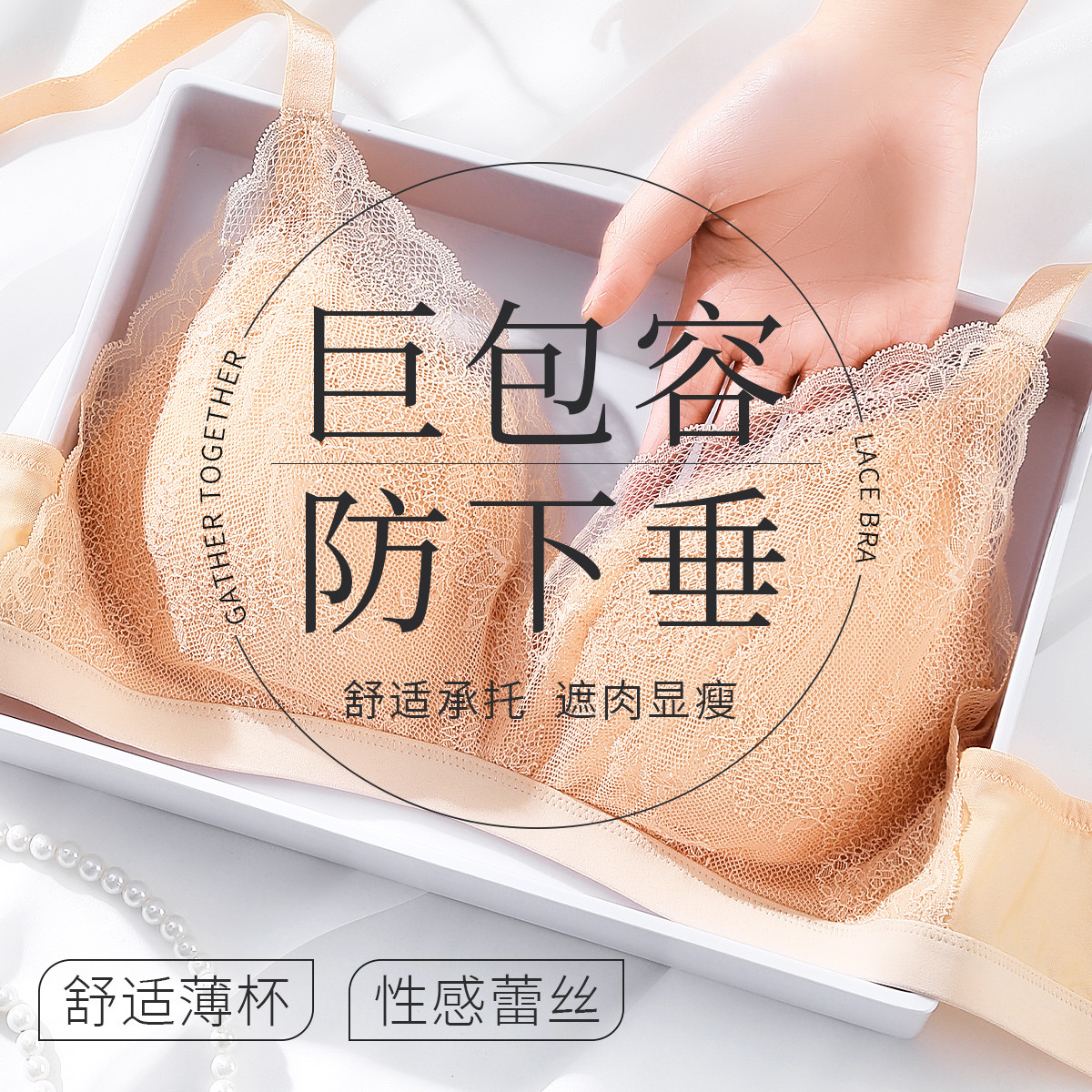 【大胸包容】内衣聚拢不空杯侧收防下垂性感花瓣蕾丝美背文胸罩女 315147