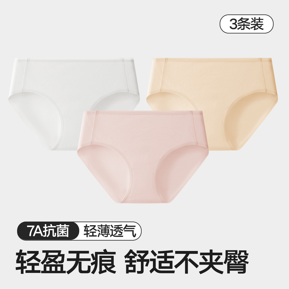 【7A抑菌 100%纯棉档】3条装女士内裤无痕透气三角短裤女 511322