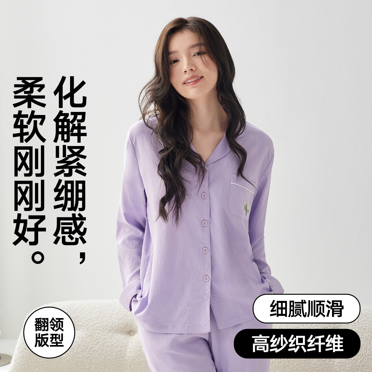 【100%棉】可外穿家居服套装女士春秋款高级感长袖长裤睡衣 607883