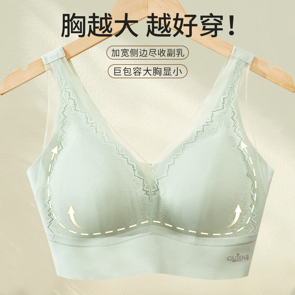 【超薄兔耳朵杯】内衣女性感蕾丝大胸显小收副乳防下垂聚拢文胸罩 276190