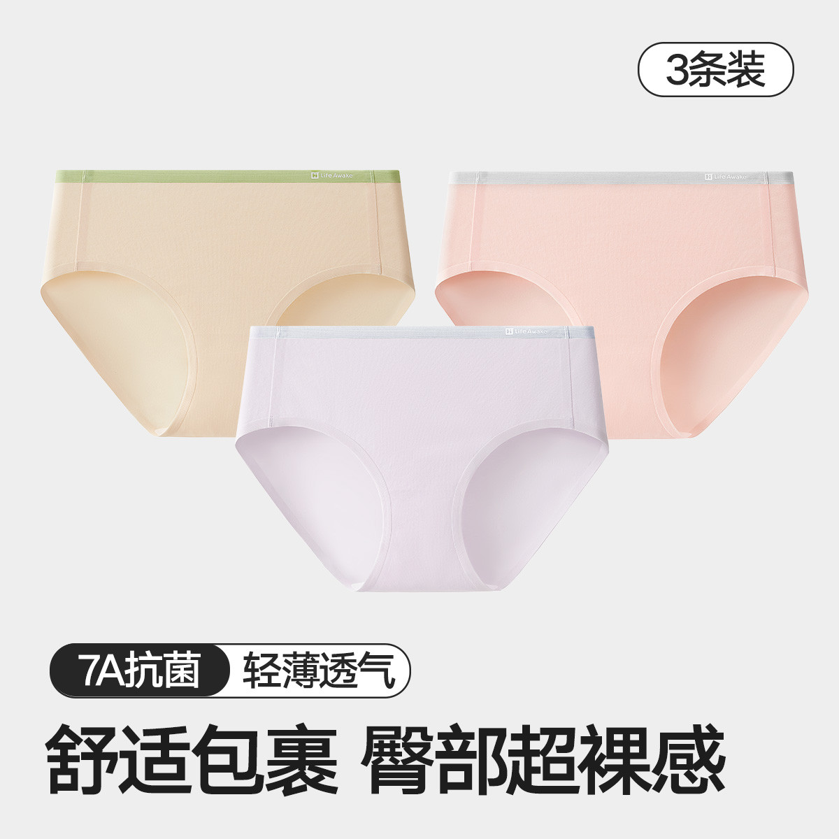 【7A抑菌 100%纯棉档】3条装女士内裤无痕透气三角短裤女 351578
