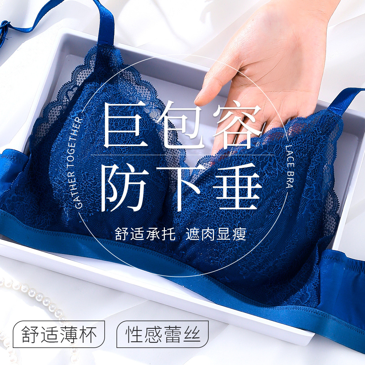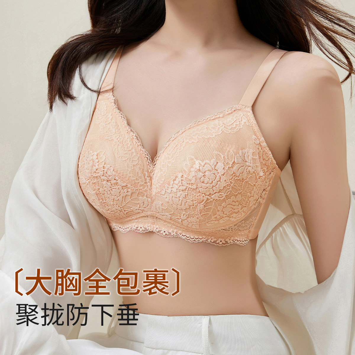 【大胸全包容】内衣女士无钢圈侧收上托性感蕾丝防下垂文胸罩 120395