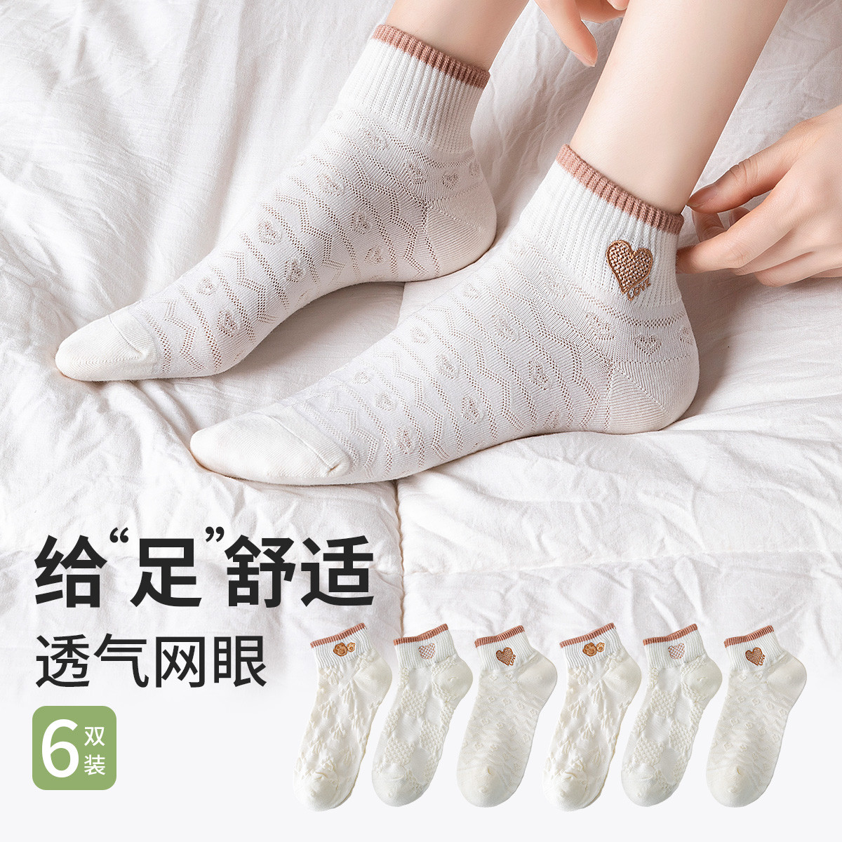 5双装女士袜子女夏季薄款纯色棉袜网眼透气绵柔亲肤时尚百搭女袜 856651