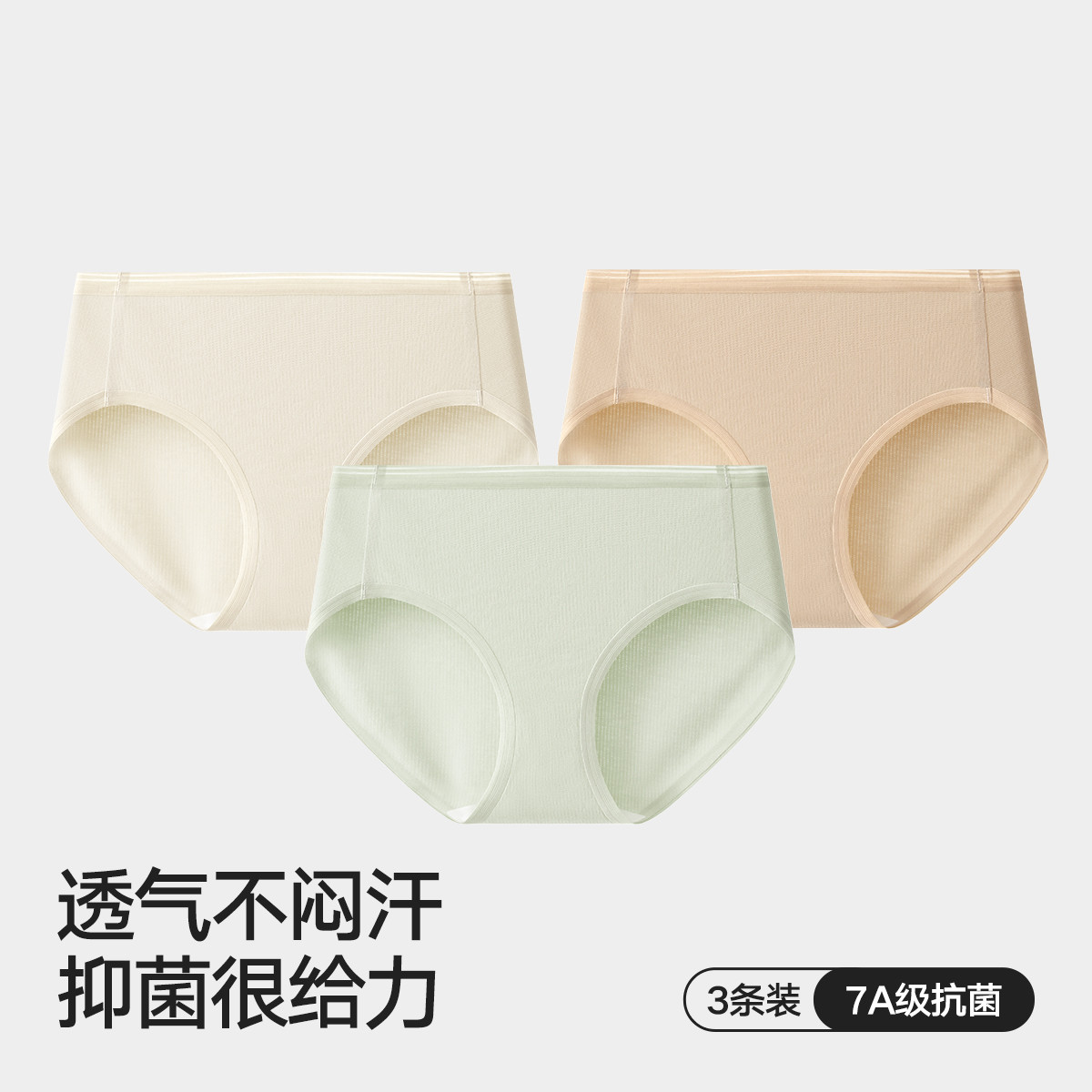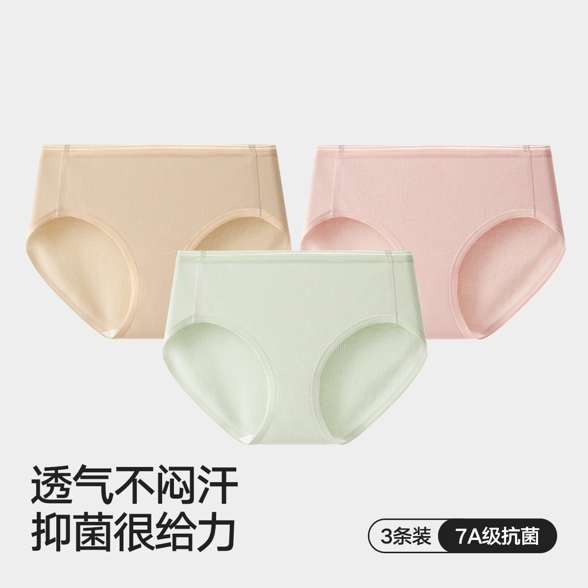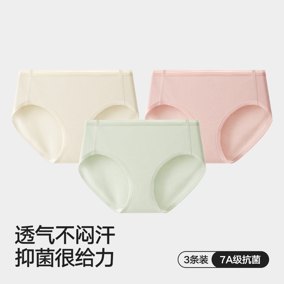 【7A纯棉抑菌内档】3条装女士中腰三角内裤透气高弹舒适内裤女 878106