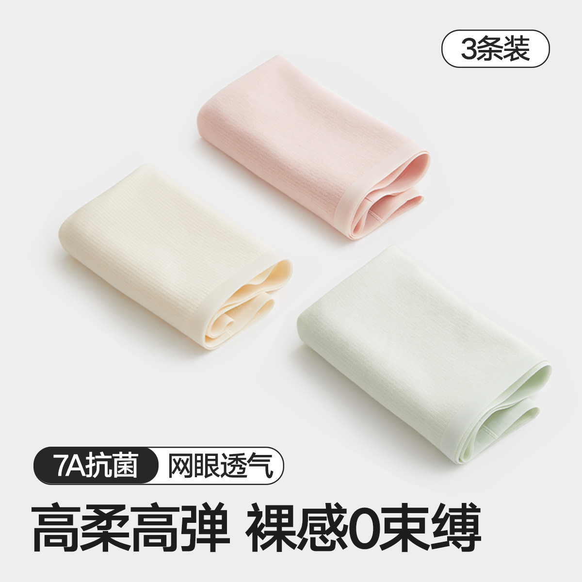 【7A抑菌】3条装女士三角内裤女生高腰纯棉裆网眼透气无痕短裤 074714