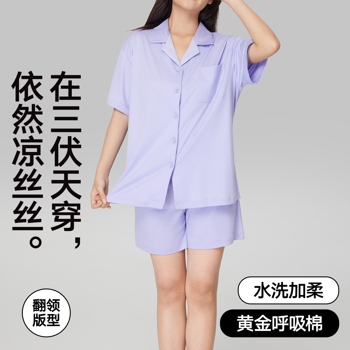 捡漏【零碳天丝】夏季女士翻领家居服套装女抑菌防螨宽松短袖短裤 601434