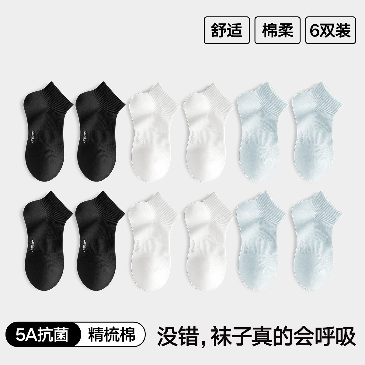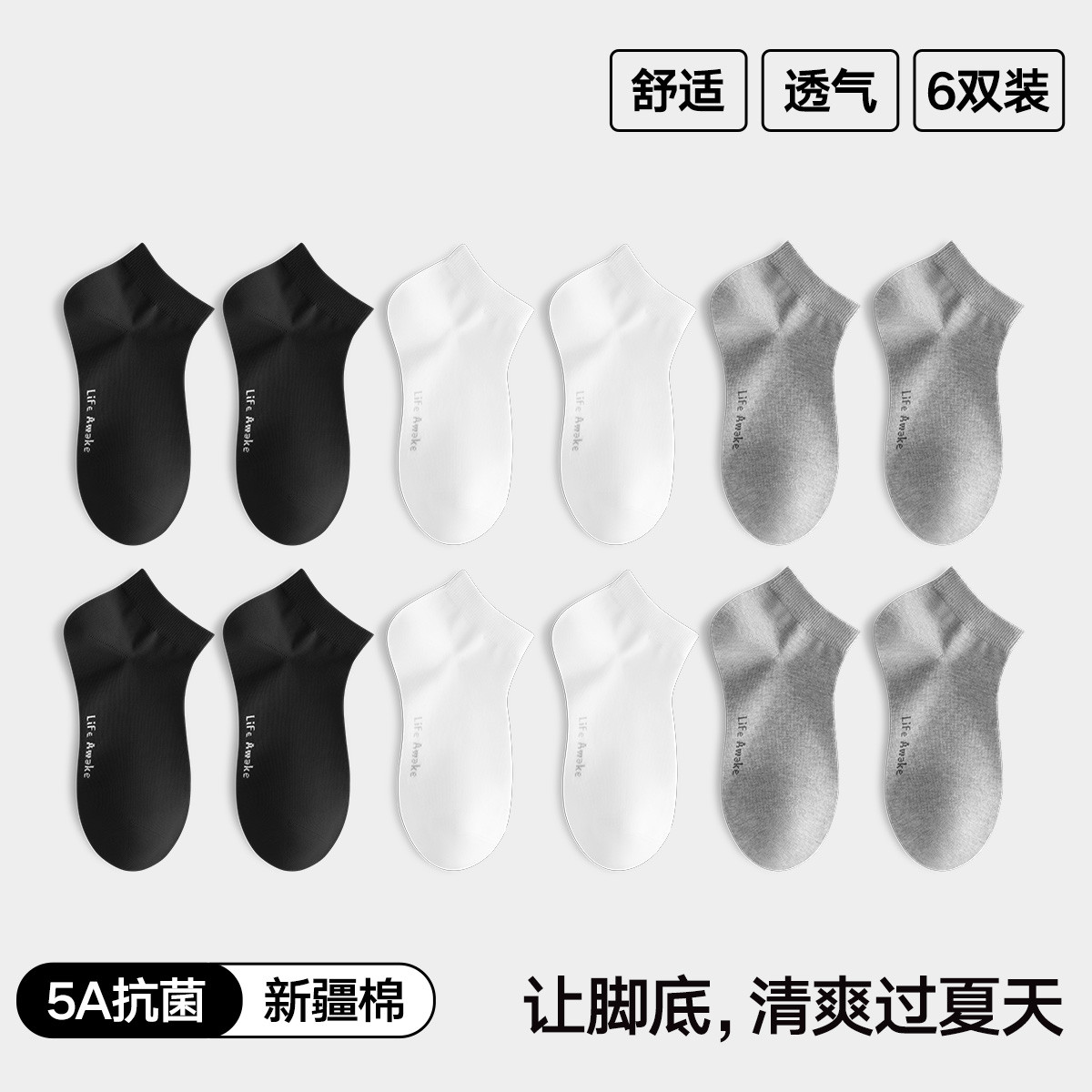 【5A抑菌 棉柔舒适 】6双装袜子女士短袜舒适透气新疆棉袜女 051994