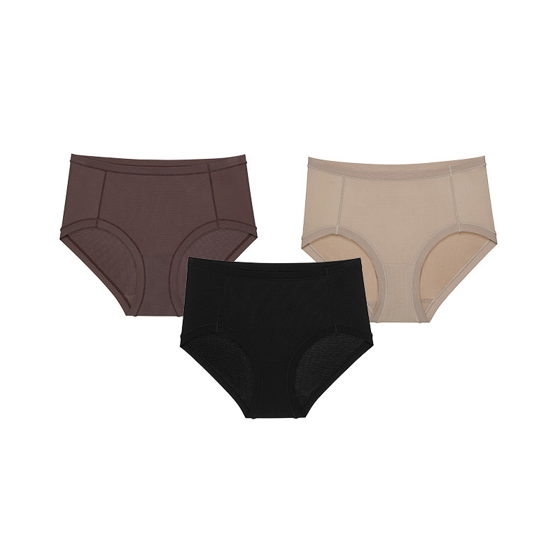 银皮500E女士内裤7A抗菌透气无痕莫代中腰三角内裤3件装 335365